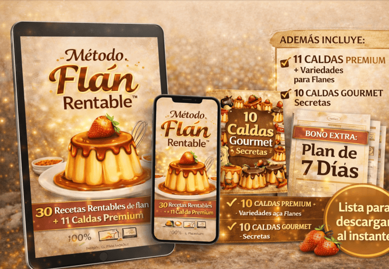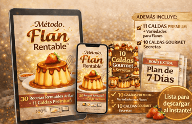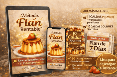 Un sistema probado que te enseña paso a paso a crear flan deliciosos y venderlos con alta ganancia, sin necesitar experiencia profesional en cocina.